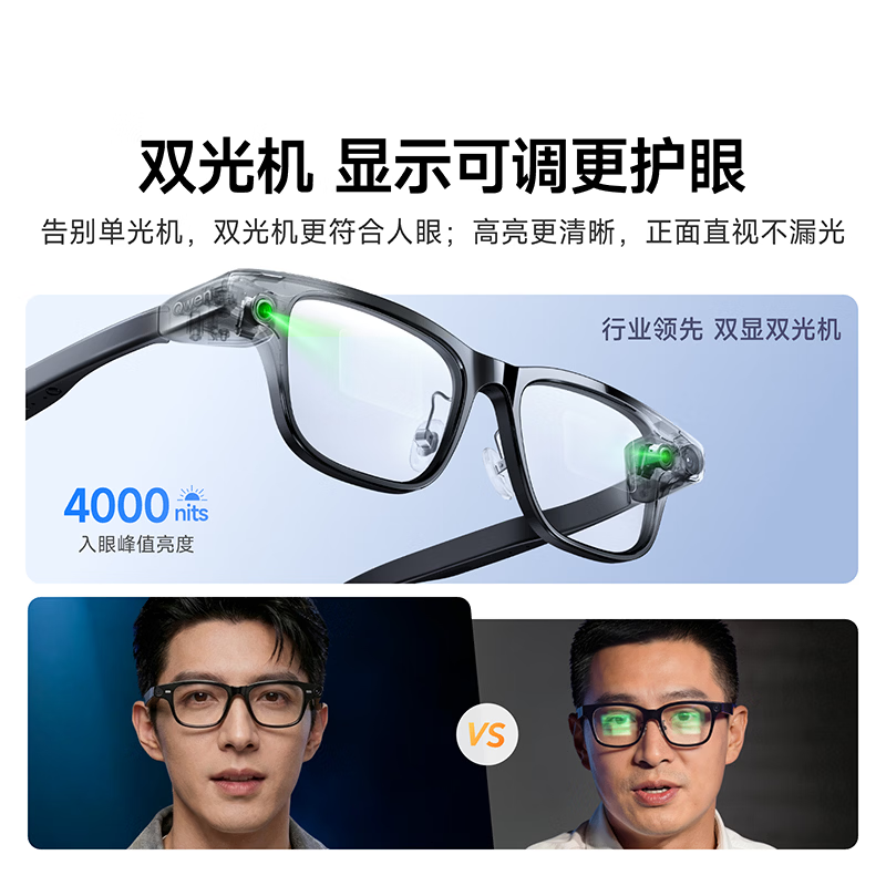 搭载千问最新 AI 模型,S1 支持语音和视觉多模态交互,AI 实时作答,可双目显示,正面直视不漏光,显示位置远近高低可调节。