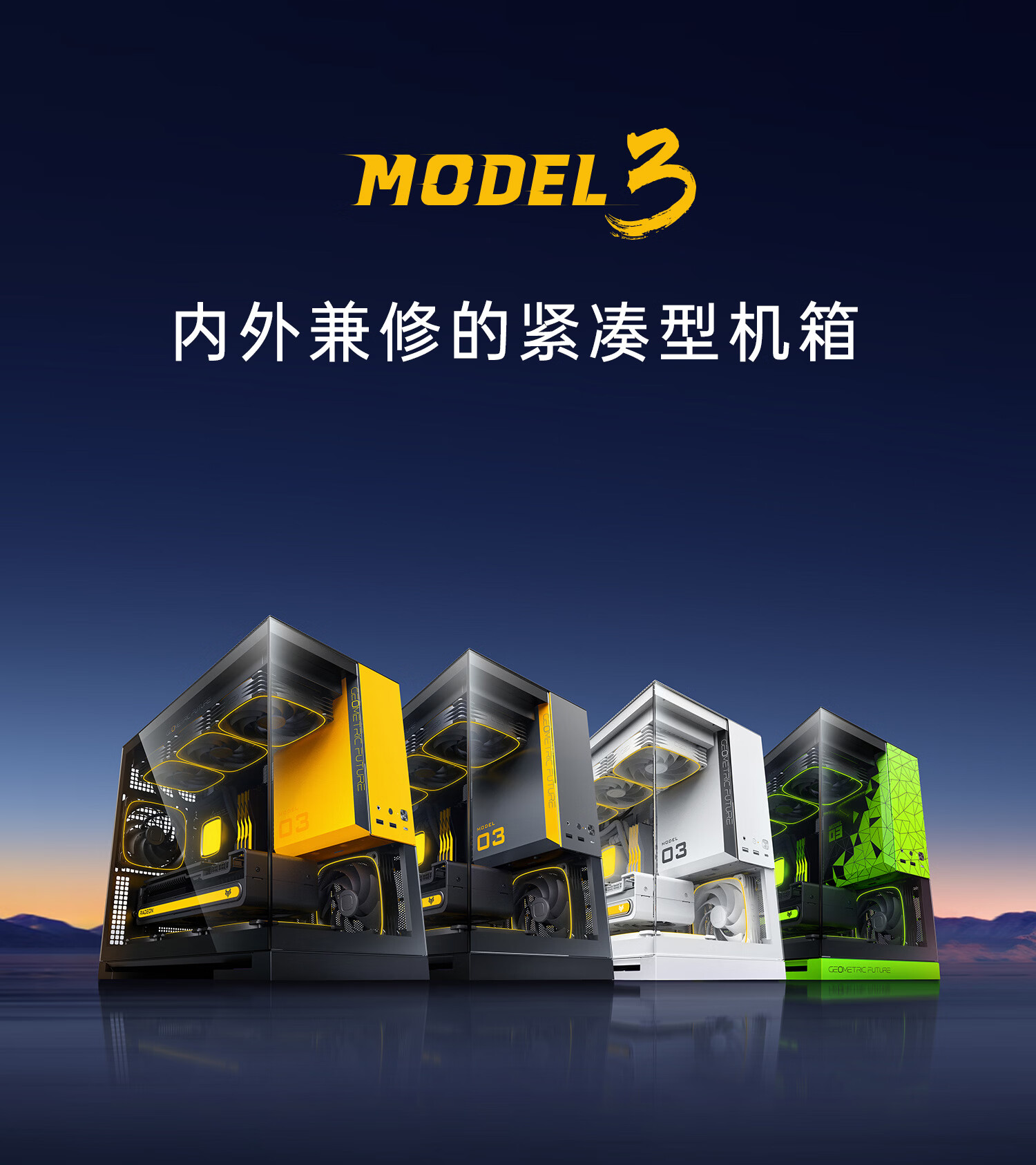 IT之家 4 月 10 日消息,几何未来 Geometric Future 上月公布的 M-ATX 机箱新品 Model 3 现已上市,品牌色、锻岩灰、极光白款单品 459 元,赛博绿款单品 499 元,还提供风扇套包和水冷套包。