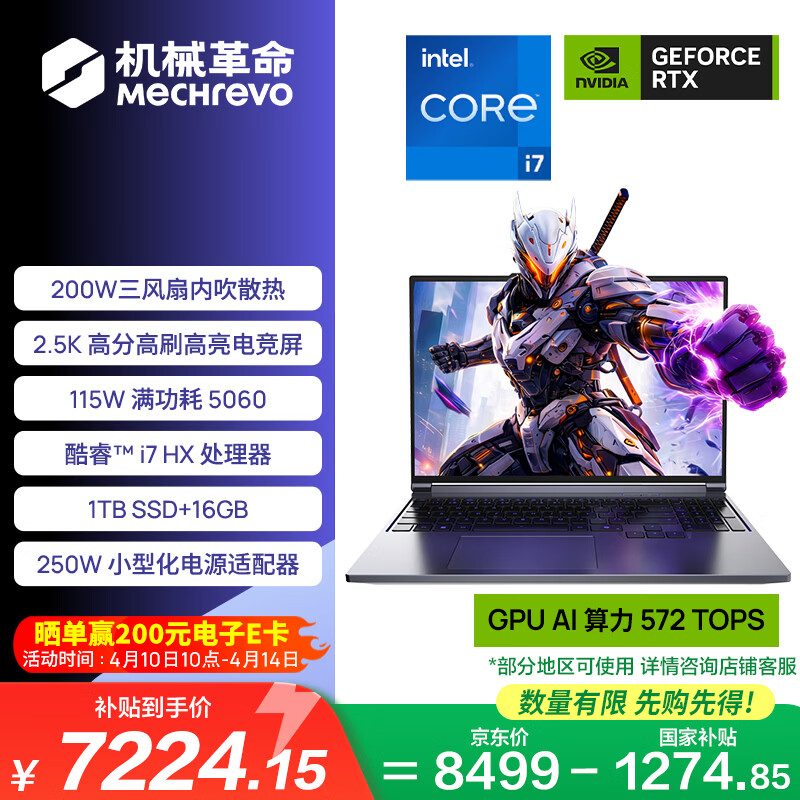 京东机械革命极光 X 游戏本酷睿 i7-13700HX 16G 1T RTX5060 2.5K 屏 180Hz 灰 8499 元直达链接2026 年数码家电政府补贴持续进行中,IT 之家为大家汇总国补领券地址,买数码家电之前记得领取:点此查看。