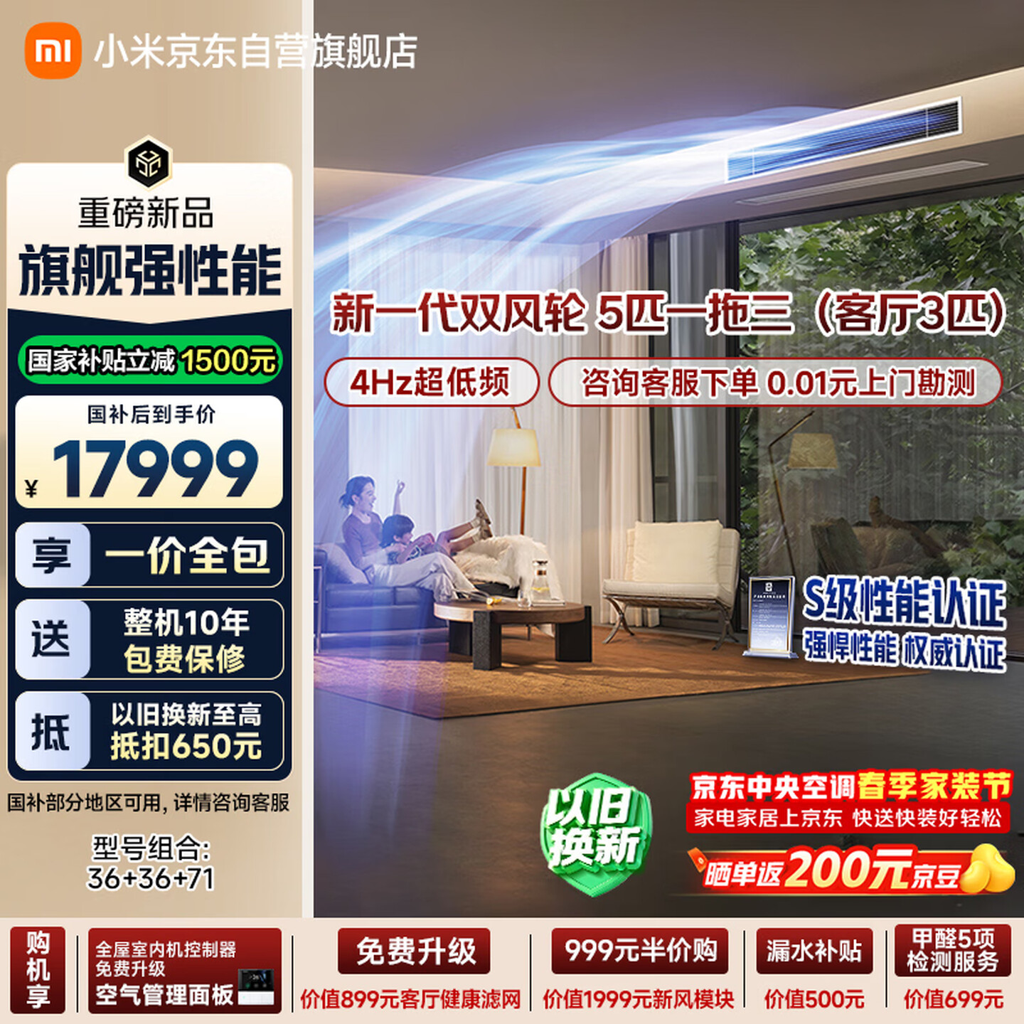 京东小米米家中央空调 多联机 双风轮 5 匹一拖三 超一级能效 19499 元直达链接2026 年数码家电政府补贴持续进行中,IT 之家为大家汇总国补领券地址,买数码家电之前记得领取:点此查看。